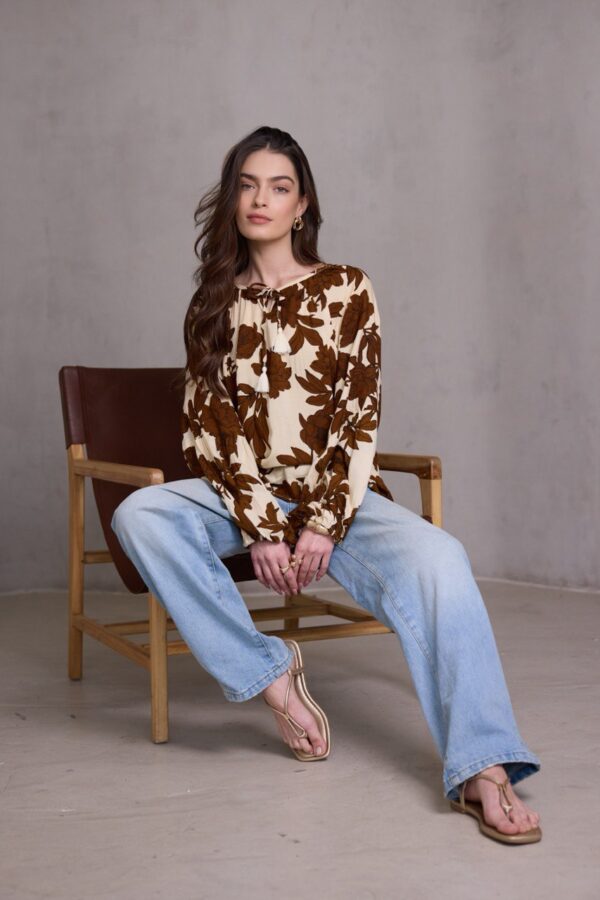 עשויה בד קליל עם הדפס אומנותי דמוי רקמה בגווני אבן-חול עדינים, שמעניקים לה מראה טבעי ונקי אך מלא נוכחות.