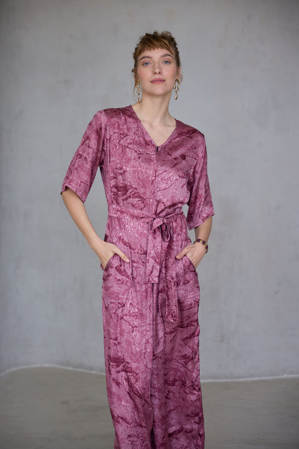 השרוול הרחב והקליל מוסיף לאווריריות ולתחושת החופש, בעוד החגורה המובנת מאפשרת לך להתאים את המידות ולהדגיש את קווי הגוף בצורה מחמיאה. האוברול מבצע שילוב מושלם בין נוחות ואלגנטיות, ומומלץ לנשים שמחפשות את הפתרון האידיאלי לשגרה היומית בלי להתפשר על סגנון.