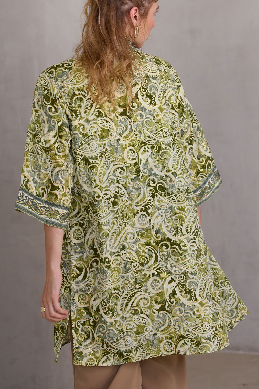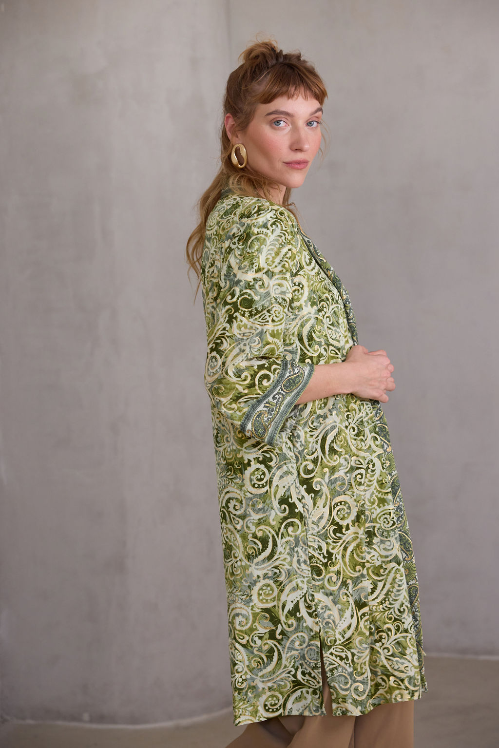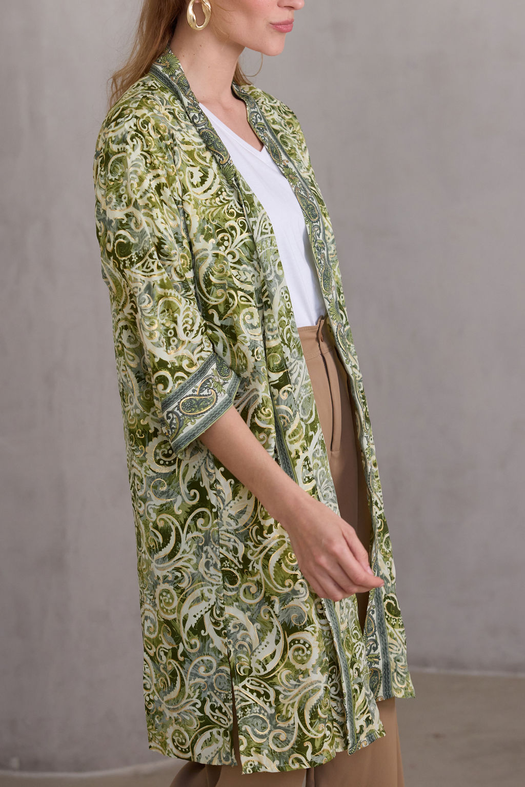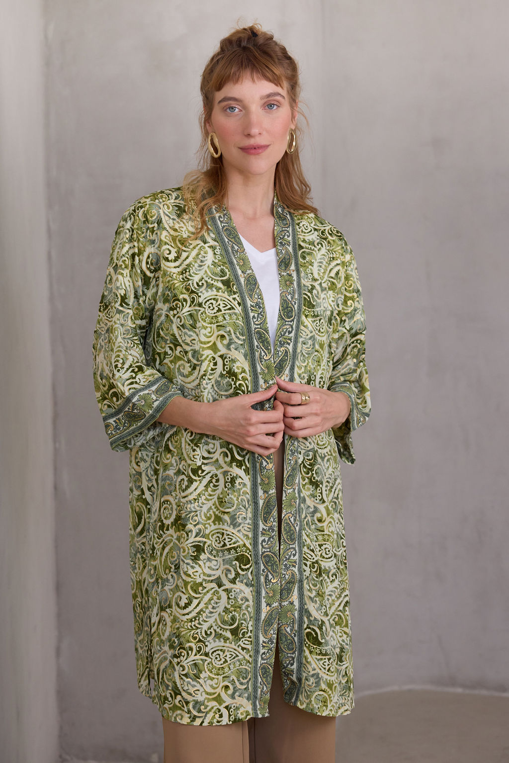 קימונו מעוצב ואלגנטי, שמביא את השילוב המושלם בין אופנה מסורתית לנגיעה מודרנית. עם גזרה רפויה ונעימה, הוא מעניק תחושת חופש וקלילות, ומספק את המראה הרך והזורם שמתאים לכל זמן ולכל מקום. הבד האיכותי והנעים על הגוף מקנה לך תחושת נוחות לאורך כל היום, בעוד הצבעים וההדפסים המיוחדים מוסיפים לקימונו אופי וסטייל ייחודי.