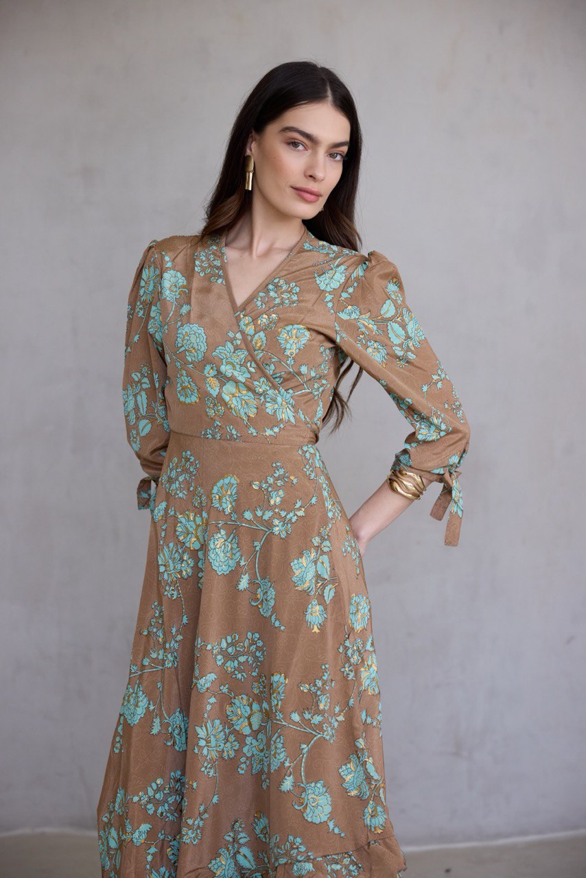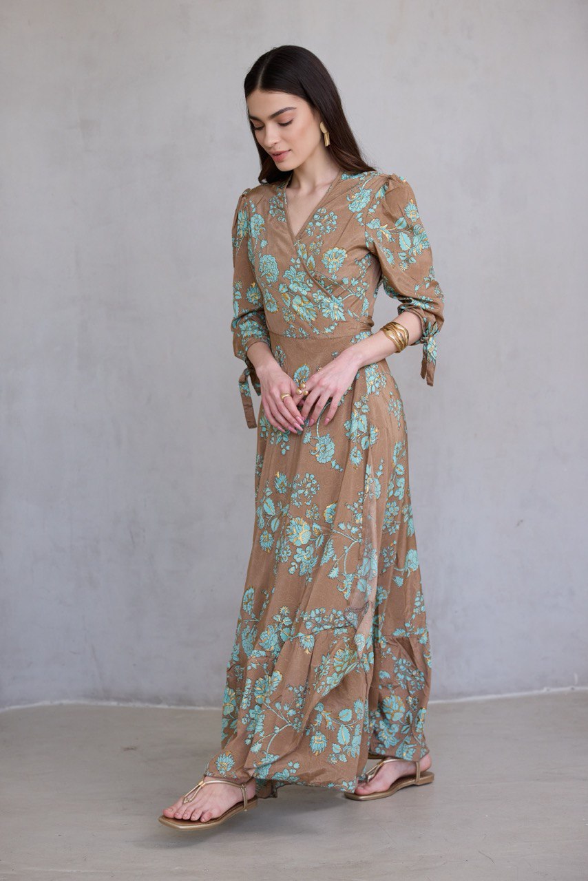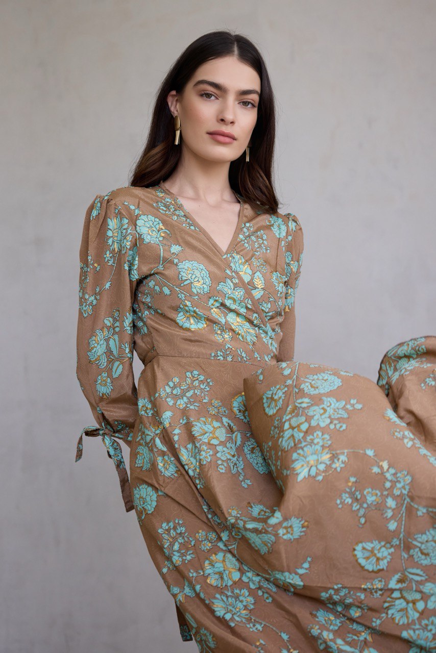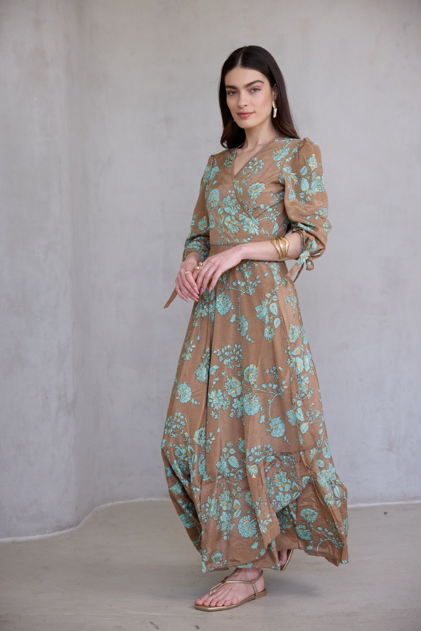 עשויה בד משי מעורב, נופל ומלטף, עם הדפס ייחודי ושכבות , הטבעות זהב עשירות שמעניקות לה זוהר עדין בכל תנועה.
