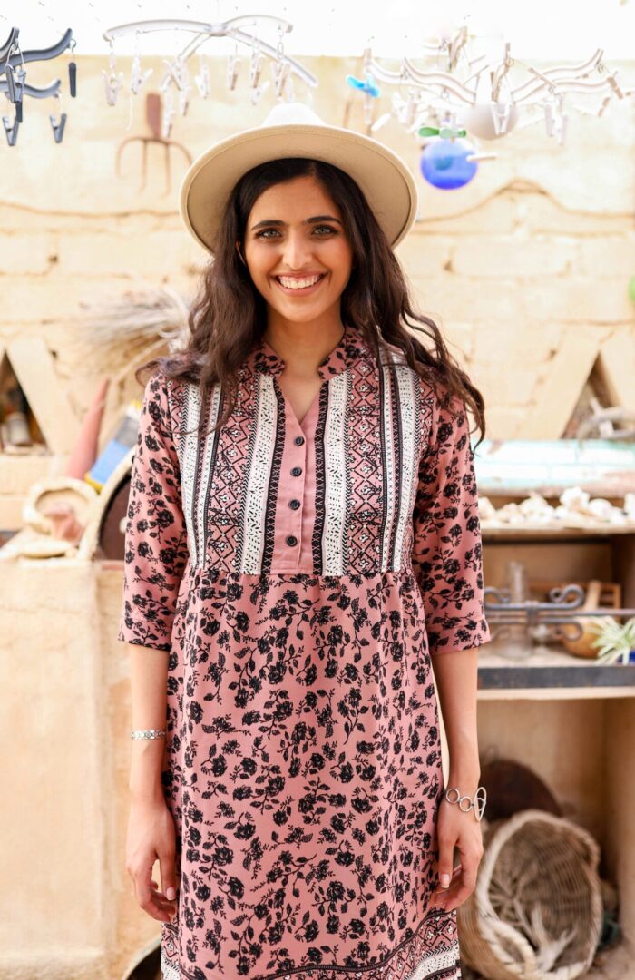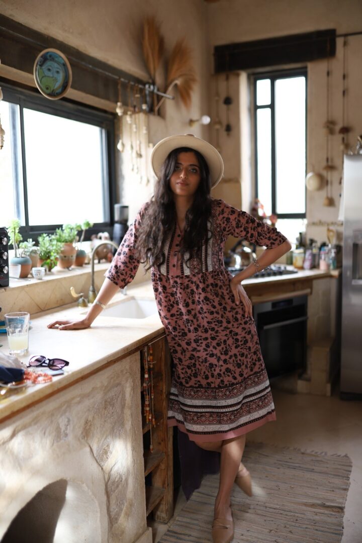 Super comfortable and light cut. The pattern on the fabric at the top of the dress “pulls” the eye up