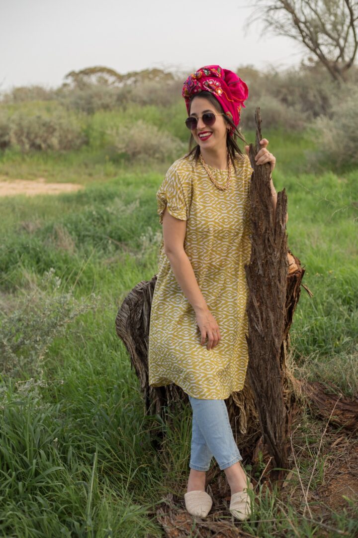Geometric mustard oversized tunic